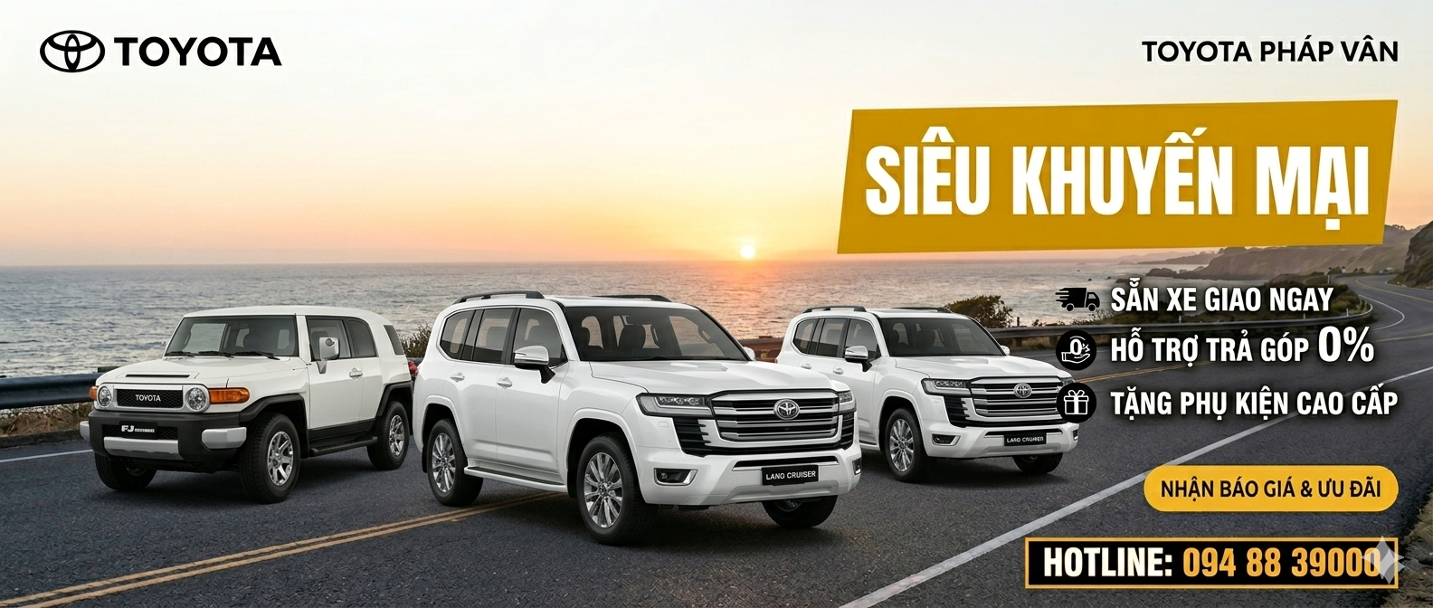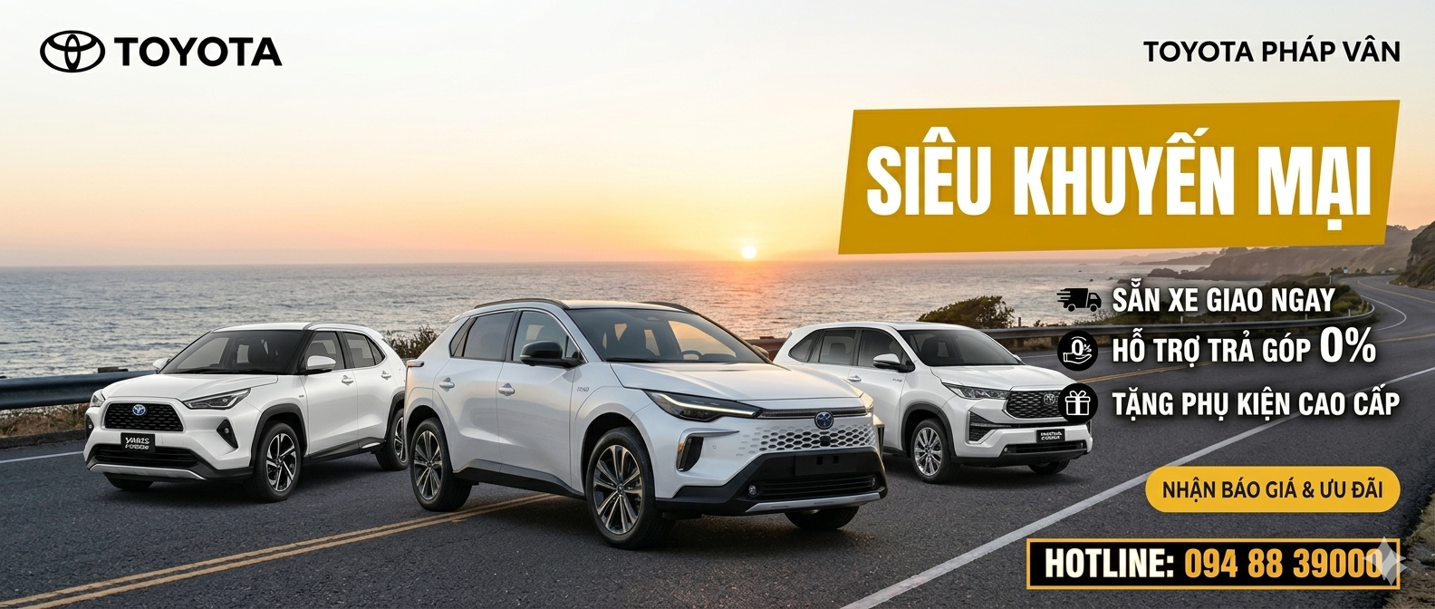 Dòng xe == Chọn dòng xe ==AlphardCamryCorolla AltisCorolla CrossFortunerHiluxInnovaLand CruiserLand PradoRaizeViosYarisAvanza PremioVeloz Cross